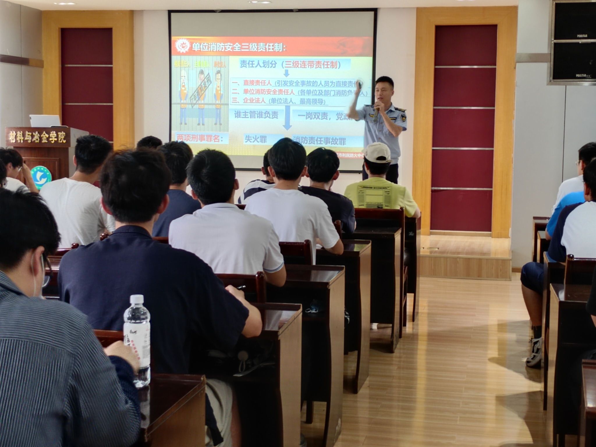 武科大网讯(通讯员 程凯源)2023年5月30日下午,材料学部、耐火材料与冶金国家重点实验室在青山校区教6楼6560报告厅举办消防安全讲座和消防实操演练。本次活动作为2023年度消防安全月系列活动之一,特别邀请武汉利民消防为师生讲解火灾安全防范、消防急救知识,培养师生良好的安全行为习惯。学部党委书记潘丽莎,主任顾华志,副主任王周福、蒋静参加本次活动。