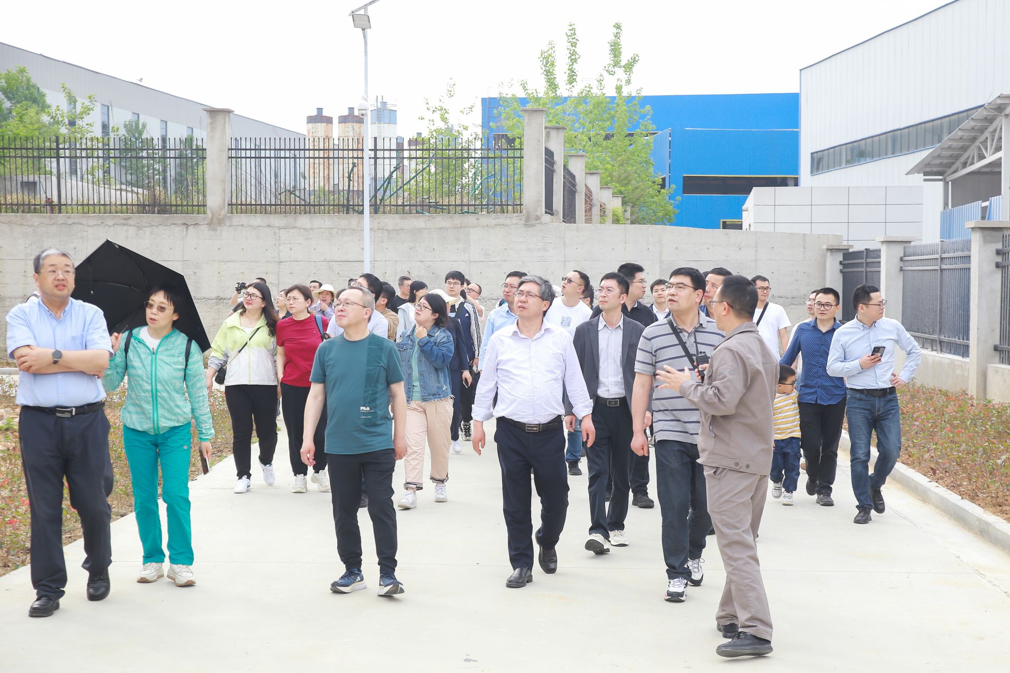 教职工一行前往员工企业——斯曼股份控股子公司晶耐新材公司,参观生产工艺线及技术中心实验室,湖北斯曼新材料股份有限公司董事长、总经理刘学新,副总经理、晶耐项目负责人陈勇陪同。