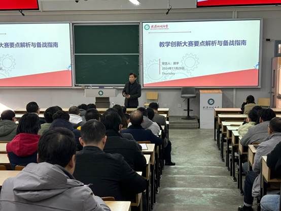 张华最后总结指出,此次培训不仅是针对参加教师教学创新大赛的一次学习,同时对我们的课程建设、教学成果奖凝练以及专业建设都有重要借鉴意义,希望全体老师努力提高自己的教学水平,积极探索教学改革与创新,打造高效课堂,切实提高人才培养质量。