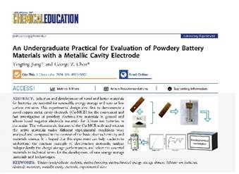 近日,美国化学会旗下化学教育领域期刊《Journal of Chemical Education》(JCE)以封面论文形式发表了公司材料学部材料化学系的重要教学研究成果“An Undergraduate Practical for Evaluation of Powdery Battery Materials with a Metallic Cavity Electrode”(J. Chem. Educ. 2024, 101, 4995-5002)。这是材料学部首次在JCE发表教研论文并获选封面。JCE创刊于1924年,是全球化学教育领域最具影响力的SCI期刊之一,该成果的发表凸显本项研究的创新价值与教学实践意义,标志着学部教研论文在国际教育类顶级期刊零的突破。