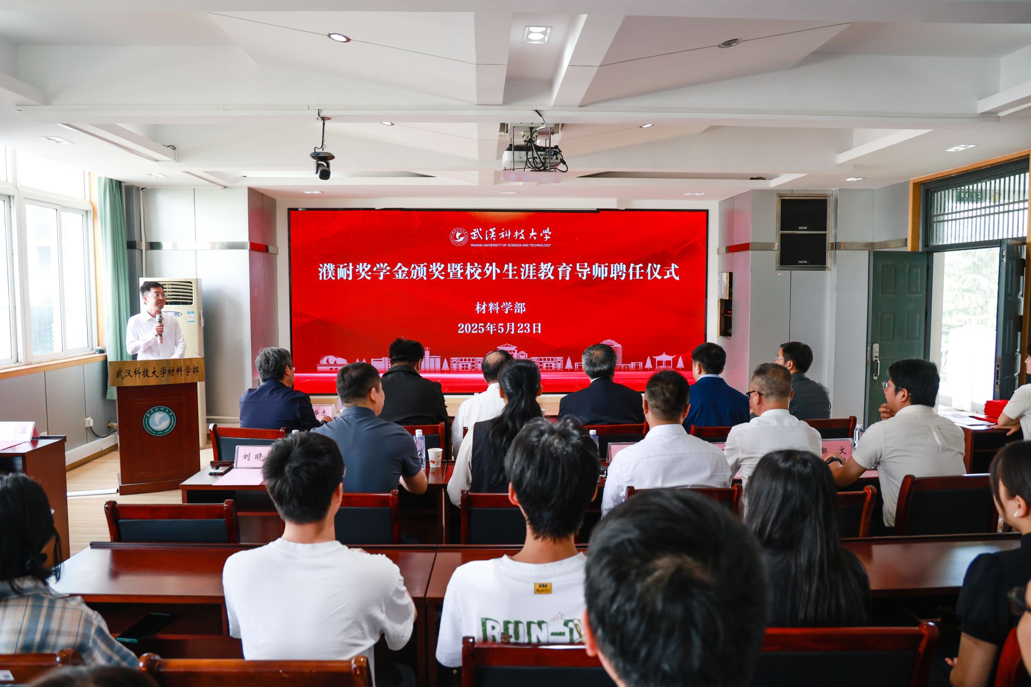 材料学部执行主任李享成宣读表彰决定,蔡咏周等29名研究生获颁2024年度“濮耐奖学金”。2023级拔尖人才计划班材料科学与工程专业夏玉婷作为获奖员工代表发言。