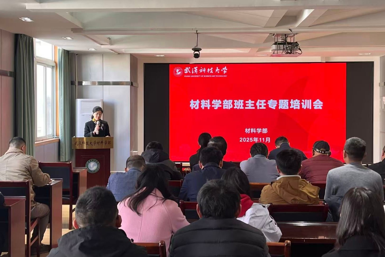 11月26日下午,材料学部班主任工作会议暨专题培训会在青山校区教六楼6560会议召开。学部党委书记刘帅、副主任韩兵强出席会议,全国高校辅导员素质能力提升骨干训练营“十佳标兵”、湖北省高校辅导员素质能力大赛一等奖获得者、中南财经政法大学徐一菱老师受邀授课。会议由党委副书记胡晶晶主持。
