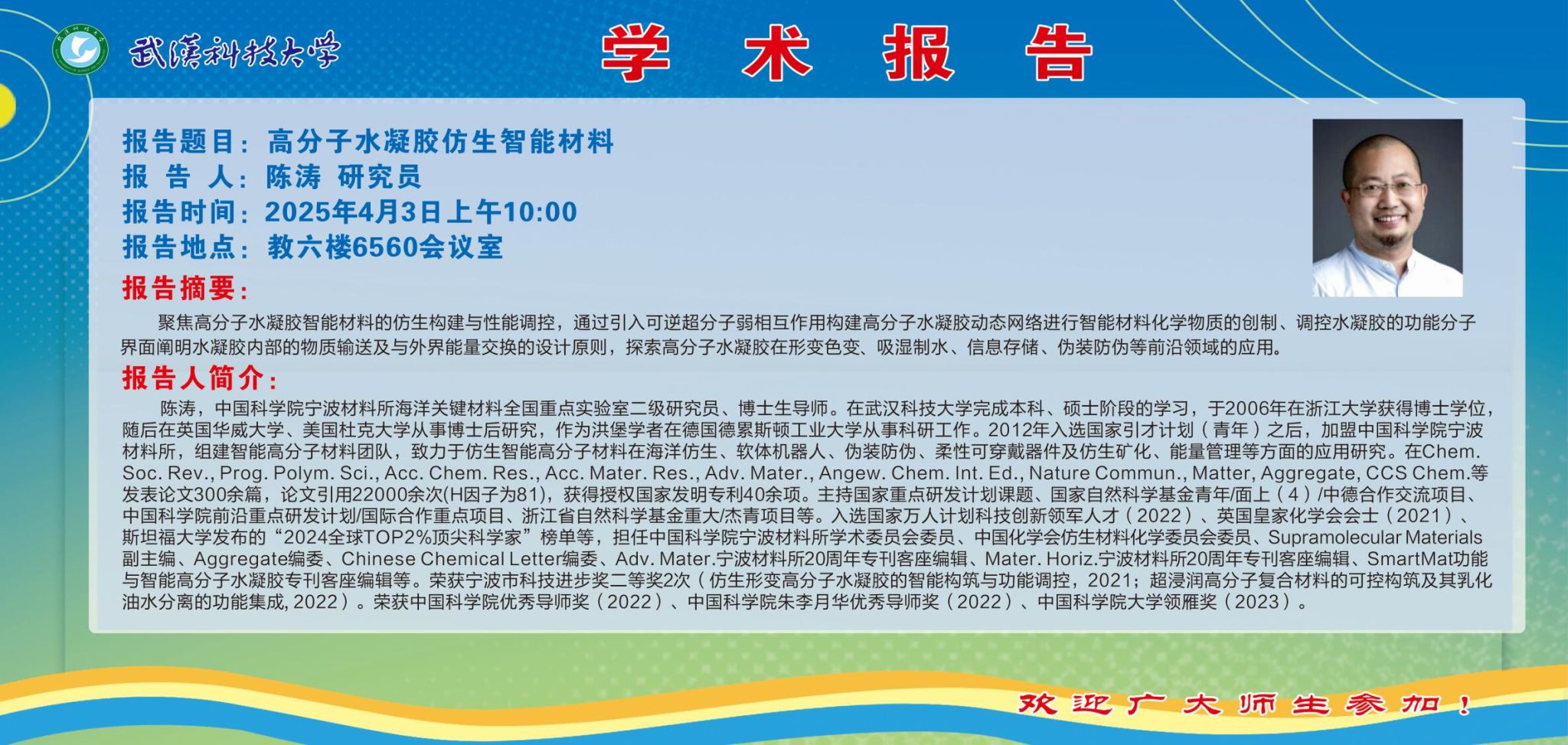 学术报告2504期:高分子水凝胶仿生智能材料