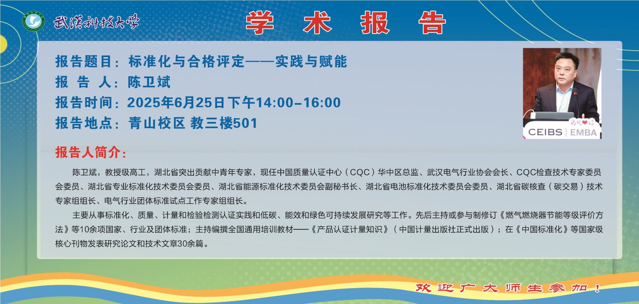 陈卫斌,教授级高工,湖北省突出贡献中青年专家,现任中国质量认证中心(CQC)华中区总监、武汉电气行业协会会长、CQC检查技术专家委员会委员、湖北省专业标准化技术委员会委员、湖北省能源标准化技术委员会副秘书长、湖北省电池标准化技术委员会委员、湖北省碳核查(碳交易)技术专家组组长、电气行业团体标准试点工作专家组组长。
