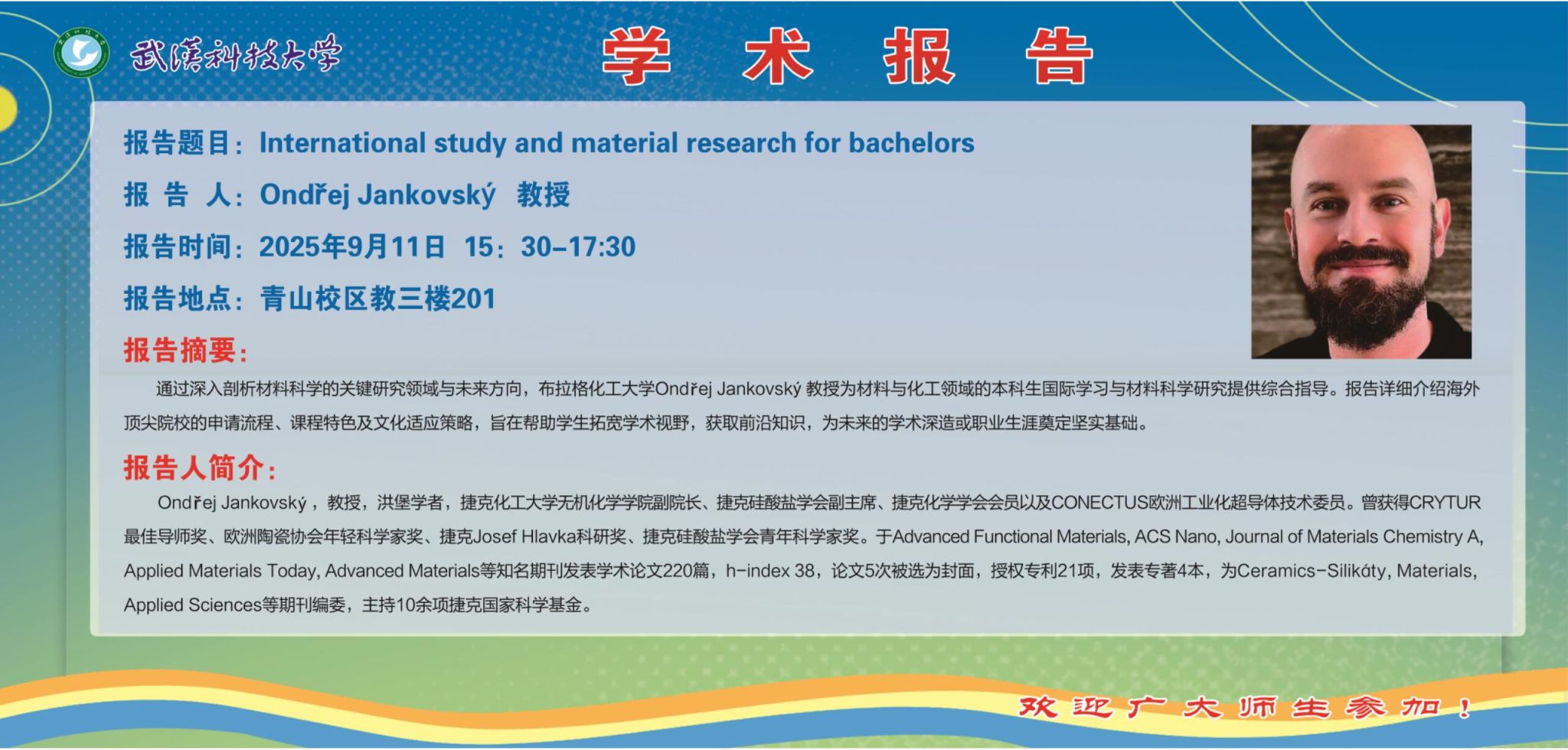 通过深入剖析材料科学的关键研究领域与未来方向,布拉格化工大学Ondřej Jankovský教授为材料与化工领域的本科生国际学习与材料科学研究提供综合指导。报告详细介绍海外顶尖院校的申请流程、课程特色及文化适应策略,旨在帮助员工拓宽学术视野,获取前沿知识,为未来的学术深造或职业生涯奠定坚实基础。