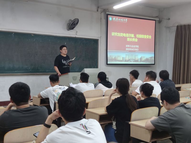 武科大网讯(通讯员祁麟)为进一步强化研究生安全教育,加强防电信诈骗宣传力度,公司于4月19日中午在主楼0101举行了研究生防电信诈骗、校园宿舍安全的班长例会。