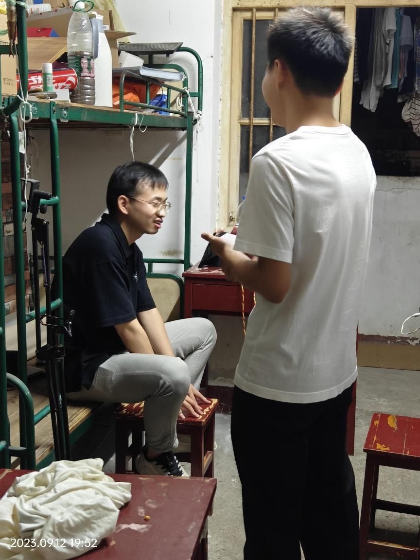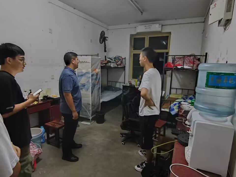 晚上7点,迎新报道工作迎来了尾声。为确保所有员工安全入住,了解员工在校适应情况、住宿需求,邵鲁凌和聂斌组织材料学部研究生会成员前往新生宿舍看望员工。聂斌热情地与新生沟通,亲切慰问新生,与同学们畅谈未来研究生三年的生活,询问是否在生活上有不便之处,并详细地记录下同学们的诉求。聂斌语重心长地说道:“寝室就像是一个大家庭,你们要和睦相处,互相关照、体贴、宽容、友善,共同维护这个大家庭的和谐与温馨。”